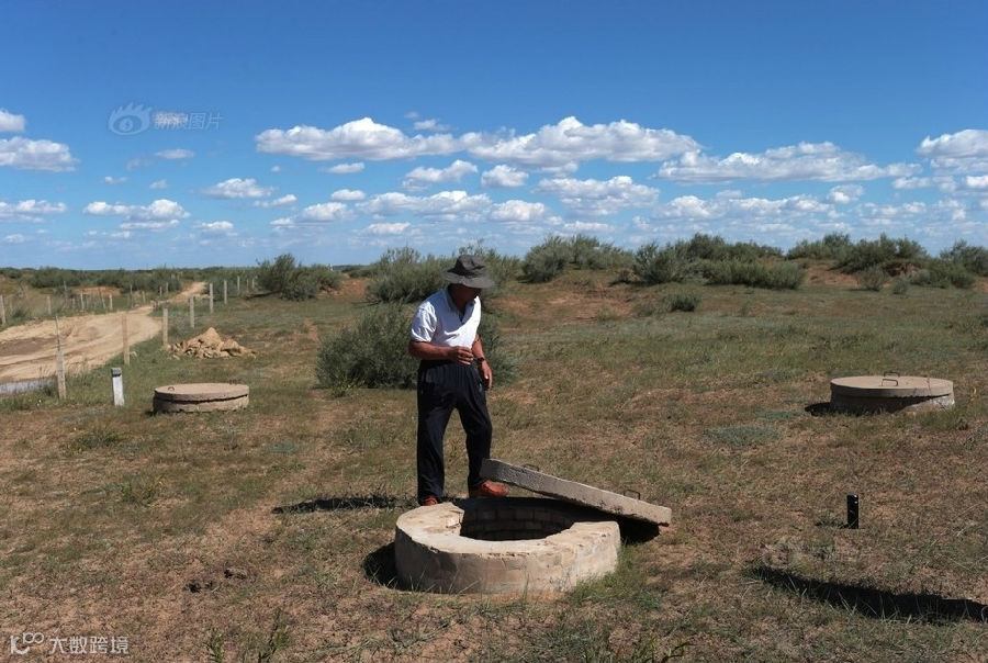 化工园区建在牧民布日古德家附近的一处取水井的3个观察井。据一份调查显示,当地企业大量抽取地下水,目前有60口深水井遍布乌审召镇各个牧场,30口井为乌审召工业园区供水,另外30口井,是为距离100多公里乌兰木伦镇的化工企业供水。