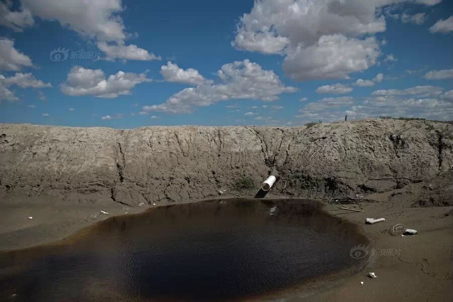 查汉淖尔湖。在蒙语中,“淖尔”即是“湖”的意思。原来是一个天然的碱湖,随着碱矿被采空,制碱企业撤走,留下了巨大的坑。2004年就开始承接了3公里处的乌审召化工园区排出的废水,逐渐形成了目前面积达10平方公里的污水湖,比原来面积扩大约四倍。