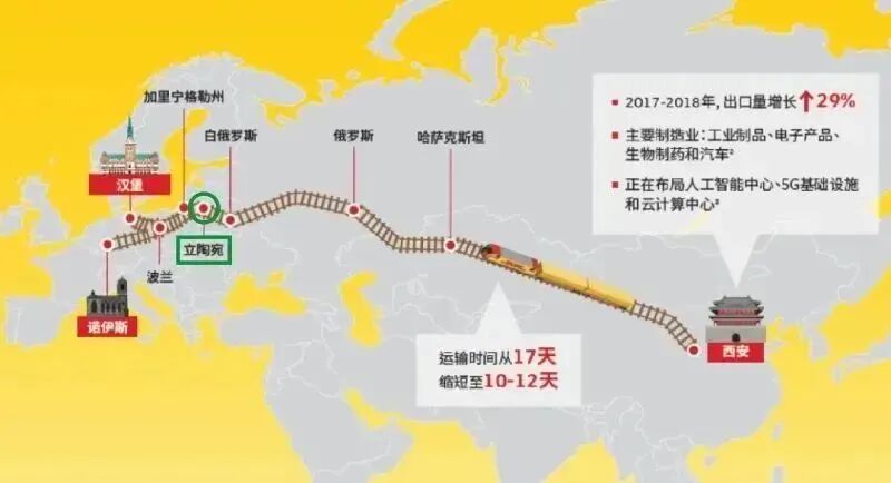 由西安国际陆港集团多式联运公司运营的“德国快线”,每周定期从西安发车,仅用10天至12天即可抵达约9400公里外的德国诺伊斯,是目前全球最快的中德货运国际铁路运输通道。