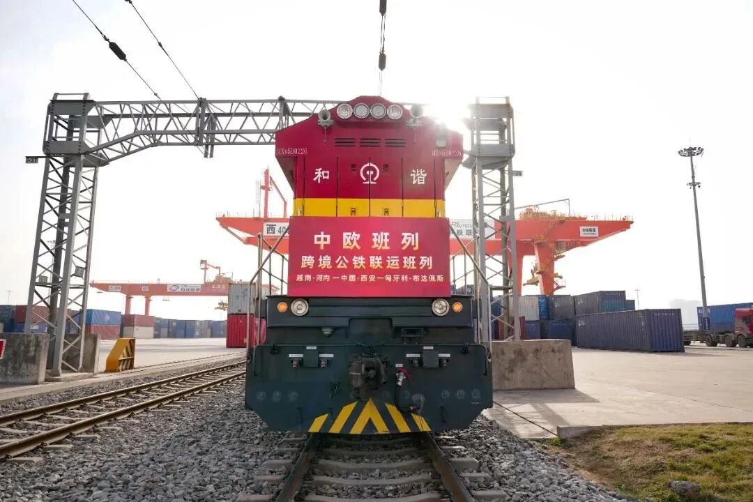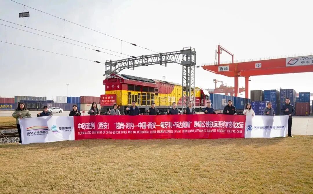 2024年3月7日上午,随着一声汽笛长鸣,中欧班列(西安)“越南·河内一中国·西安一匈牙利·布达佩斯”跨境公铁联运班列从西安国际港站鸣笛启航,标志着这条班列线路进入常态化运行,这是西安国际陆港集团多联公司推出又一东南亚经西安至欧洲全程的跨境公铁联运产品,将为共建“一带一路”新通道、共创融合发展新格局增添新动力。