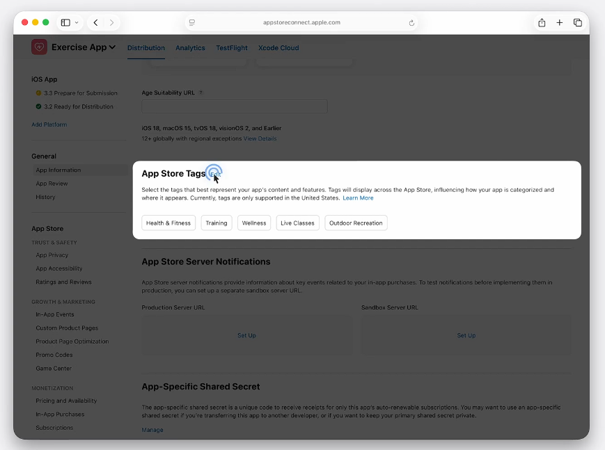 系统生成的标签会展示在App Store Connect后台的App信息部分,开发者可以在这个位置选择或取消哪些标签显示在App Store中。