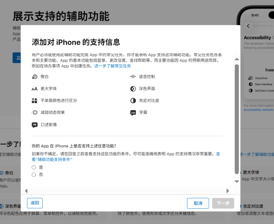 ①开发者不能随意选择辅助标签,如果App涉嫌故意标注误导性的辅助功能信息,可能会影响App审核(比如苹果的审核团队可能会联系开发者,要求其更新辅助功能标签)。