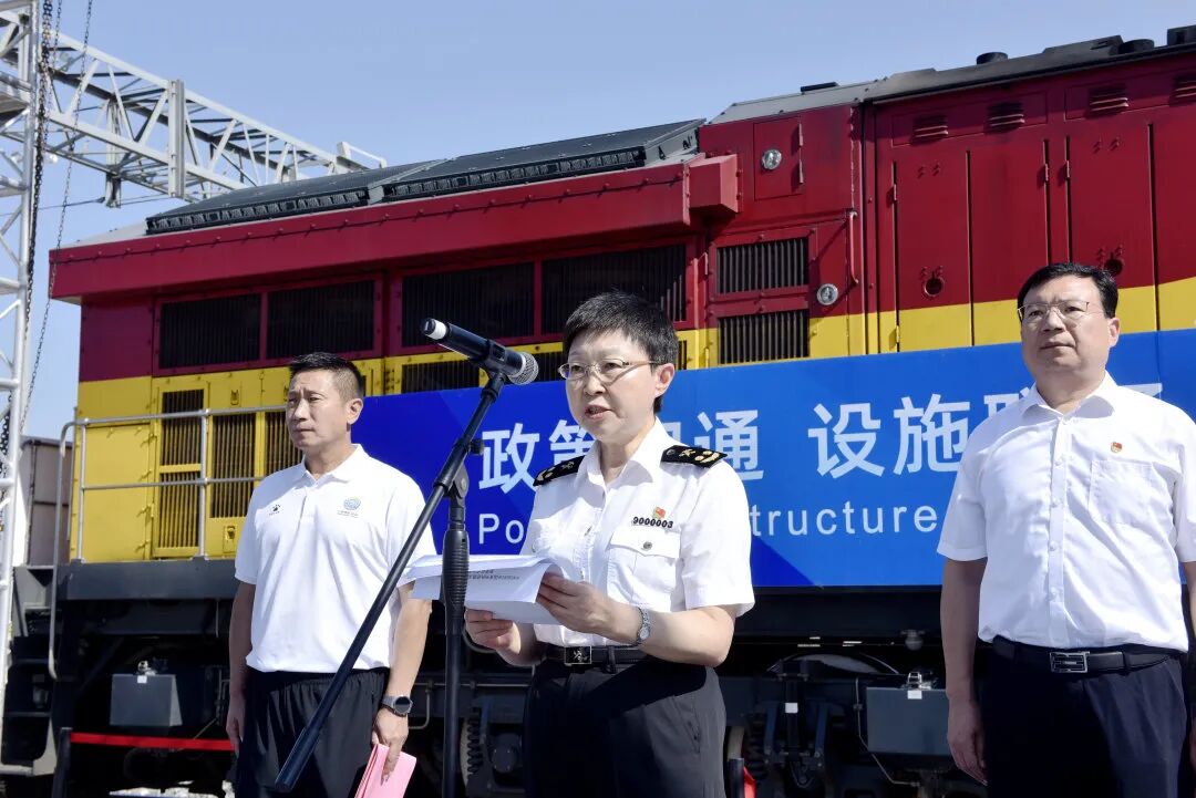 西安海关党委委员、副关长李玉讲话并宣布发车令。