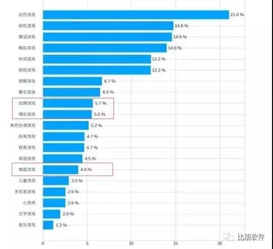 总体来说棋牌游戏的数量占比应该是达到15.2%,略微少于动作类游戏。