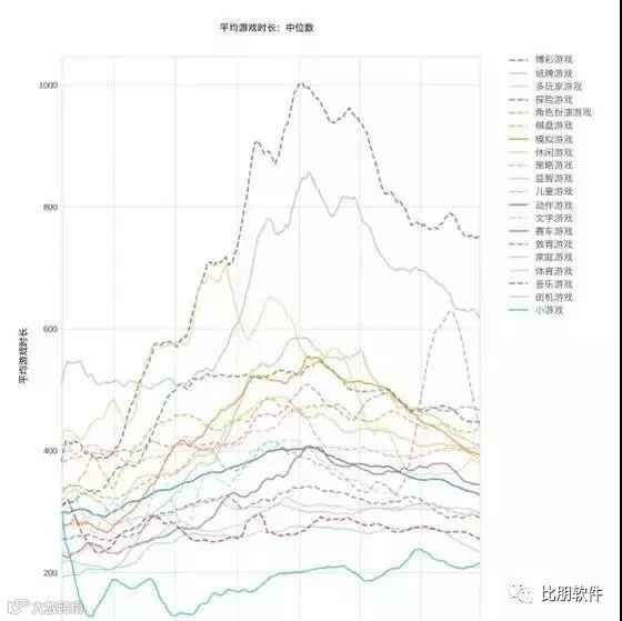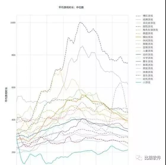 报告还有一个很有趣的现象:对游戏时长来说,最不受欢迎的游戏比最受欢迎的游戏占用用户时间少了近三分之二,就拿动作游戏与博彩游戏来说,玩动作游戏的人多吗?确实多,但大部分只玩6分钟就不玩了,玩博彩游戏的人比动作游戏的人数要少,但是他的游戏时长是动作游戏的三倍。博彩游戏和纸牌游戏的平均游戏时长排一二名,超出其他游戏一大截。前16%的游戏的每次游戏时长平均11.5分钟,垫底的16%的游戏每次游戏时长大约只有3分钟左右,四倍的差距啊朋友们!