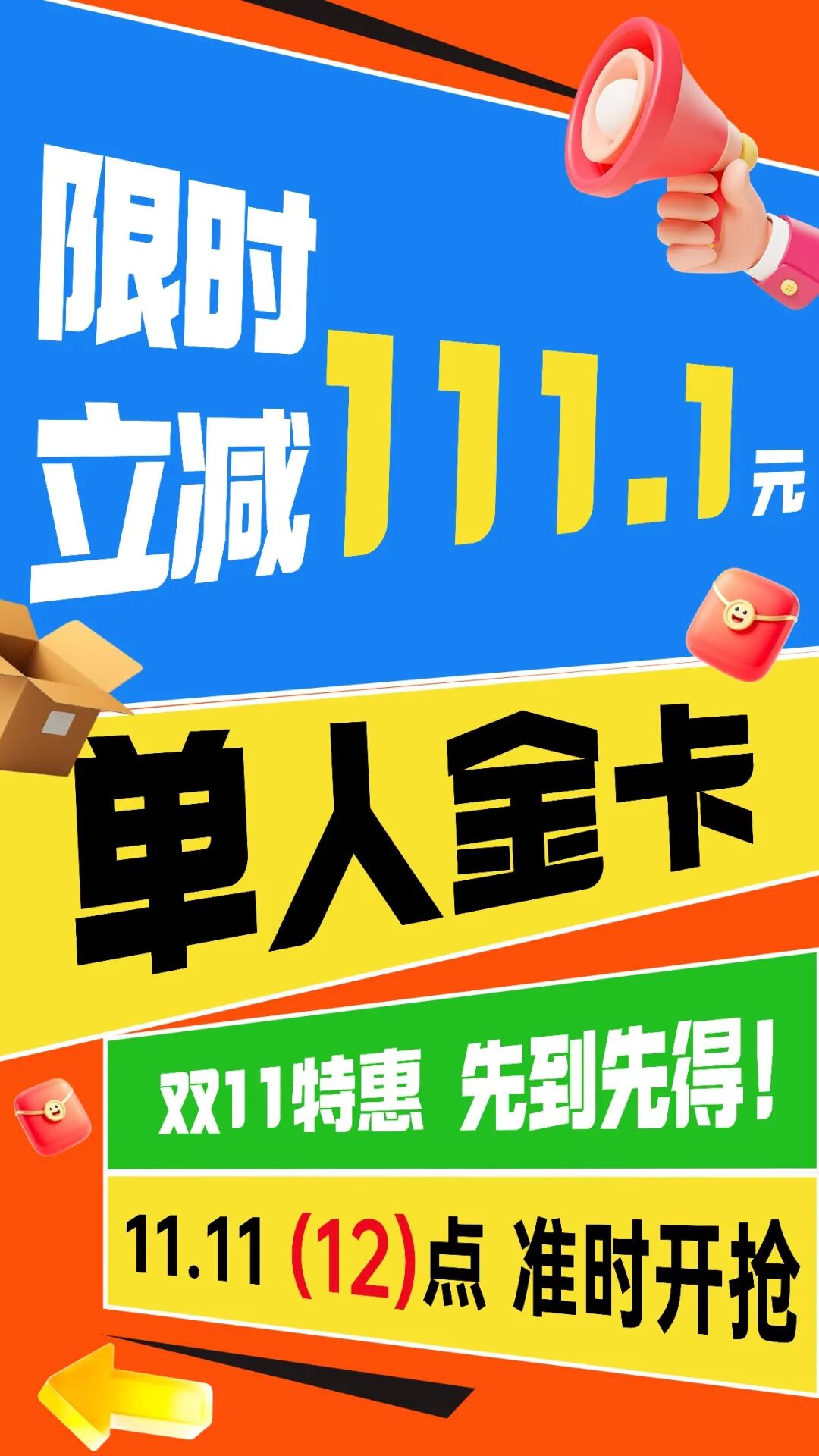 定好闹钟,明日开抢!单人金卡立减111.1元!