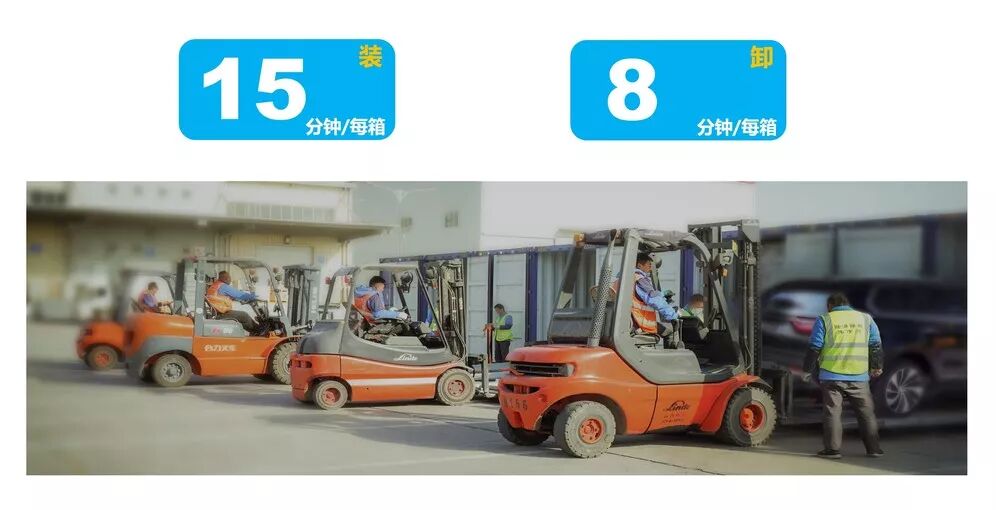 借鉴了国内外先进的港口团队技术以及航母甲板操作人员安全操作理念,全程在集装箱外完成装卸,保证了操作人员的安全性。同时,装卸效率巅峰值最快可以达到15分钟装一箱,8分钟卸一箱,不断挑战装卸车的时间。