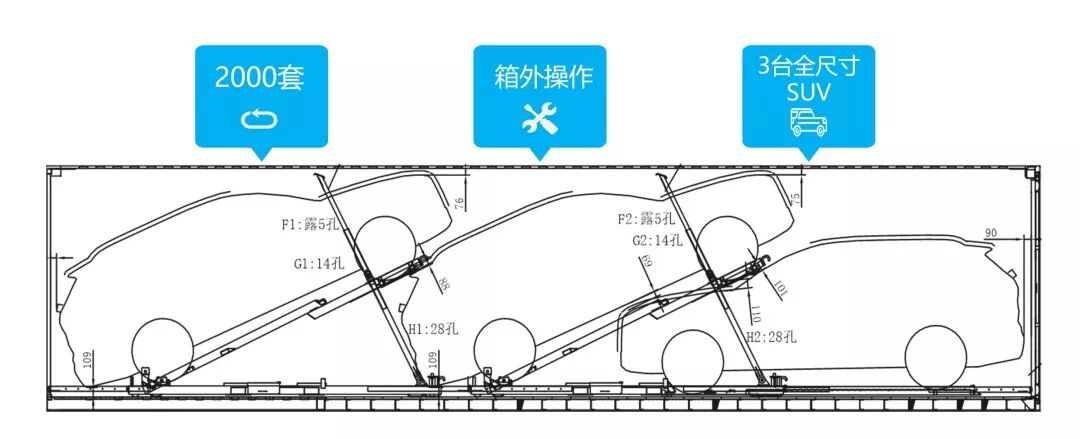 这种支架是当前业内唯一可装载3台全尺寸SUV支架,可满足包括(xc90/x5/Q7/GLS)在内大型进口整车装载需要。
