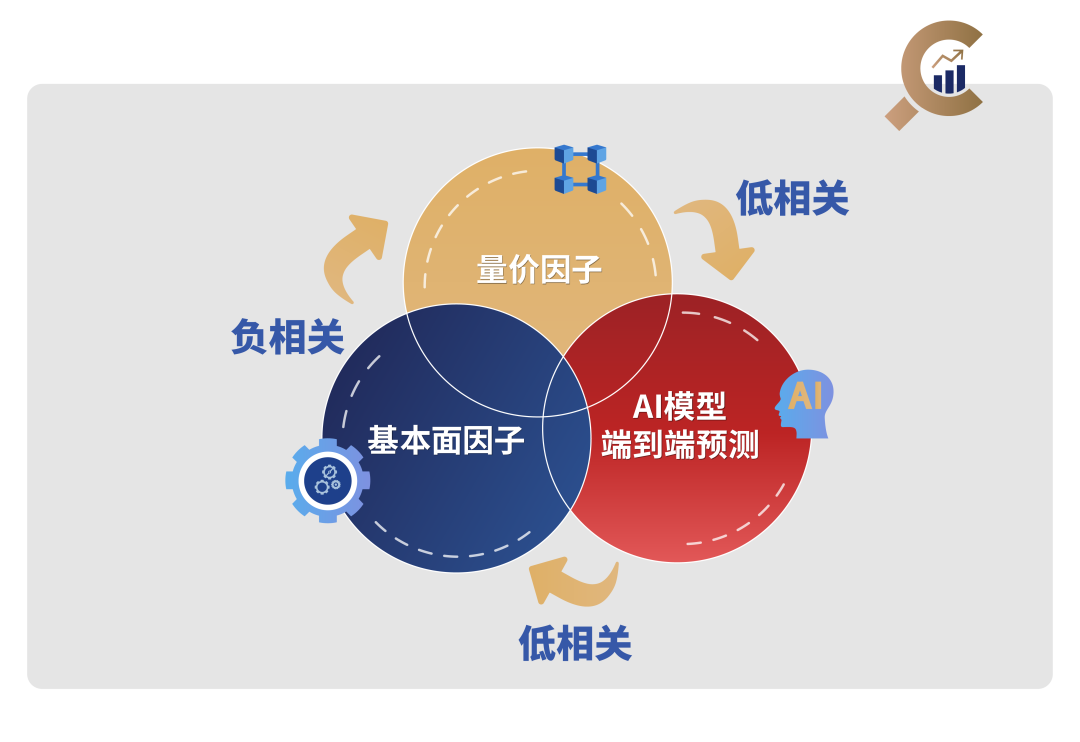 相比之下,量价因子则主要依靠捕捉反转信号。该策略通过多维度挖掘市场定价的非有效性,寻找具有补涨或反转潜力的股票,或对超涨个股进行低配,从而实现超额收益。因此,具有反转特征的量价因子与具备趋势跟踪特性的基本面因子形成了天然的负相关性。