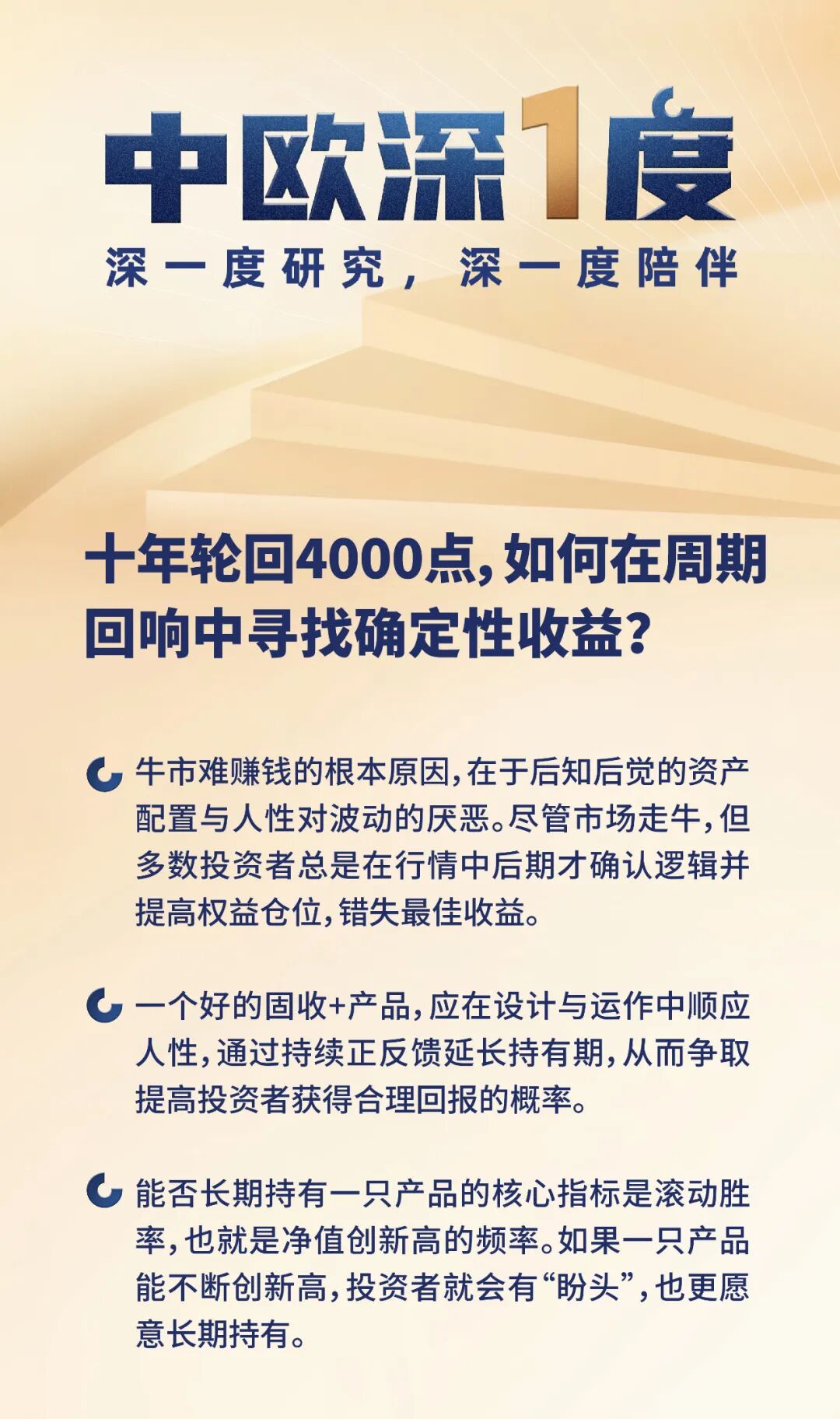 一个好的固收+产品,应在设计与运作中顺应人性,通过持续正反馈延长持有期,从而提高投资者获得合理回报的概率。