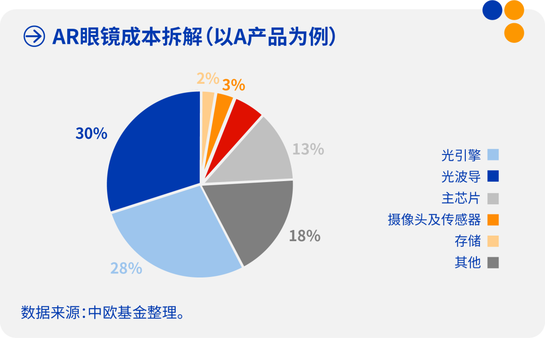 不过,在真正成为一款全民爆款可穿戴设备之前,智能眼镜还需实现底层技术的突破——半导体、通信、显示等领域的技术进步,将决定AI终端的性能和用户体验。尤其是在AR/MR领域,光学技术的突破将是关键。AR眼镜的光学系统不仅决定了设备的重量和佩戴舒适度,还直接影响用户的视觉体验。光学方案是AR眼镜的核心环节,其重量占比超过50%,很大程度决定了用户的使用体验和佩戴时长;而光引擎与光学方案整体成本占比接近60%,决定其价格接受度。因此,光学技术的创新将成为AR眼镜发展的核心驱动力。