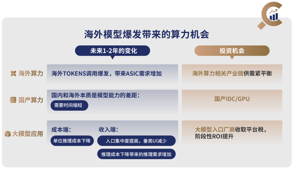 总体来说,海外整体的投入决心非常强,增速非常高,飞轮效应在高速旋转。供需错配叠加估值优势,持续性还在延续,我们没有在其他领域看到这样的投资机会,这正是我们看好海外算力的重要原因。我们会关注下个“Deepseek”时刻,如果再来一轮单位算力成本大幅下降,可能会对投资逻辑造成冲击。