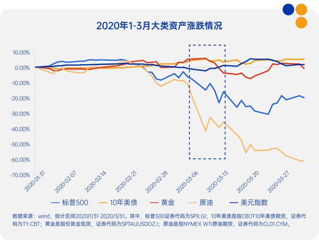 2020年3月,新冠疫情全球蔓延引发市场恐慌,美股十天内四次熔断,标普500指数最大回撤达34%。初期,美债和黄金仍起到一定避险对冲作用,但随着恐慌加剧,3月18日前后市场进入“无差别抛售”模式,黄金、美债与股票同步下跌,美元指数飙升。这一反常现象被国际清算银行(BIS)称为“安全资产悖论”:当流动性全面枯竭时,现金成为唯一“安全资产”。