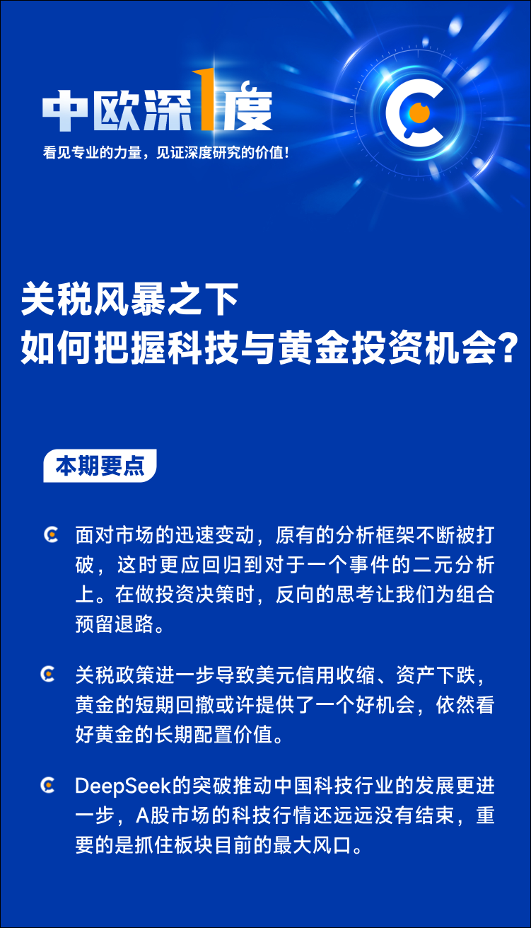 在全球贸易秩序重建的过程中,面对这样一个复杂、多变、充满不确定性的市场,黄金的避险属性成为大家关注的重点,最新政策再度中断了黄金大幅上涨的趋势,当下的黄金资产是否还具有配置价值?同时,本轮贸易战本质上也是科技战,中美科技产业链脱钩后,在国产替代和扩大内需的主流叙事之下,又有哪些值得把握的时代机遇?
