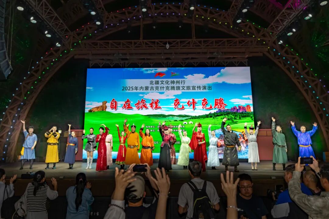 有着草原“红色文艺轻骑兵”美名的内蒙古克什克腾旗乌兰牧骑队员,以“北疆文化神州行”为主题,为广大游客带来一场草原风情的民族歌舞盛宴,生动展示了克什克腾旗独特的自然风光和人文魅力。
