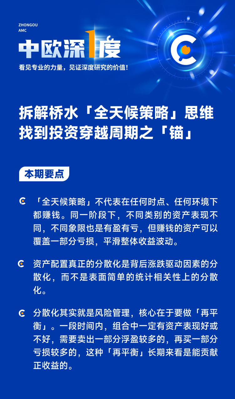 先在权益资产内部做好「全天候」,再去搭配其他风格的大类资产,这是中欧权益版「全天候策略」的核心逻辑。