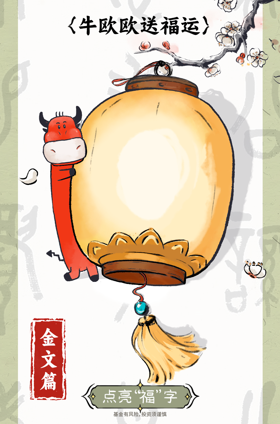 * “福”系列书法由中欧基金联合中信出版集团特邀央视书画频道“一日一印”栏目主讲人、北京大学书法公开课主讲人方建勋定制撰写。