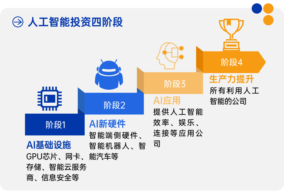 当前我们或处于阶段一的中后期,人工智能投资才刚刚起步。