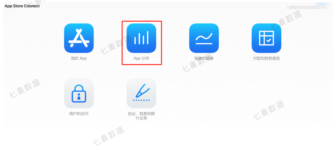 1、首先进入 App Store Connect 后台首页,选择“App 分析”,之后选择要查看的 App: