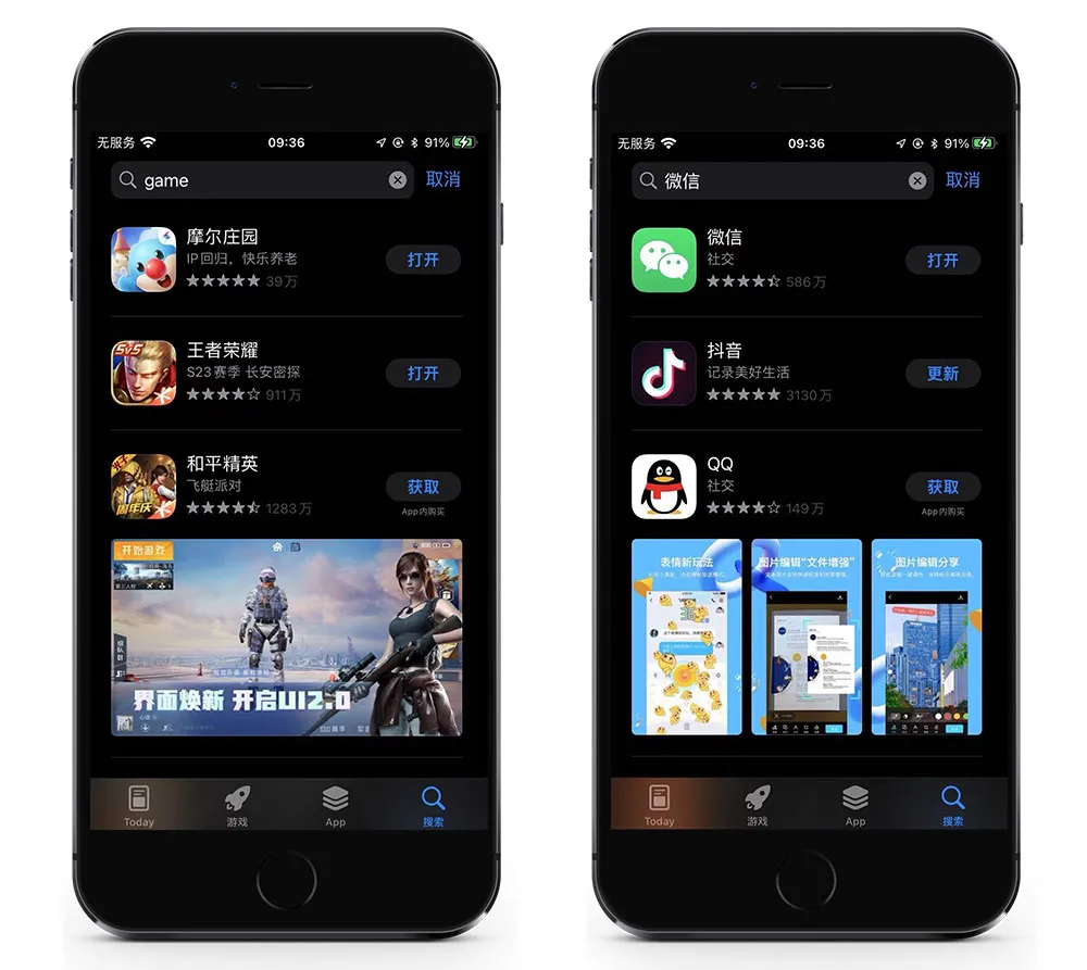 除了以上重大更新外,我们在测试iOS15系统的App Store时还观察到,出现在搜索结果中的已安装的App已不再显示截图。