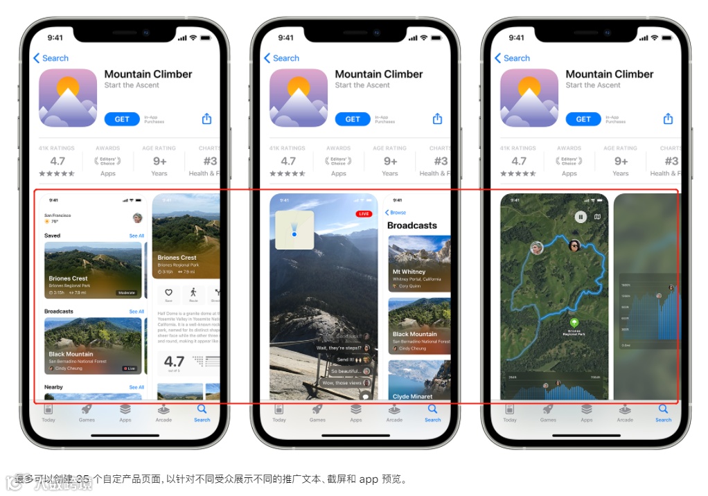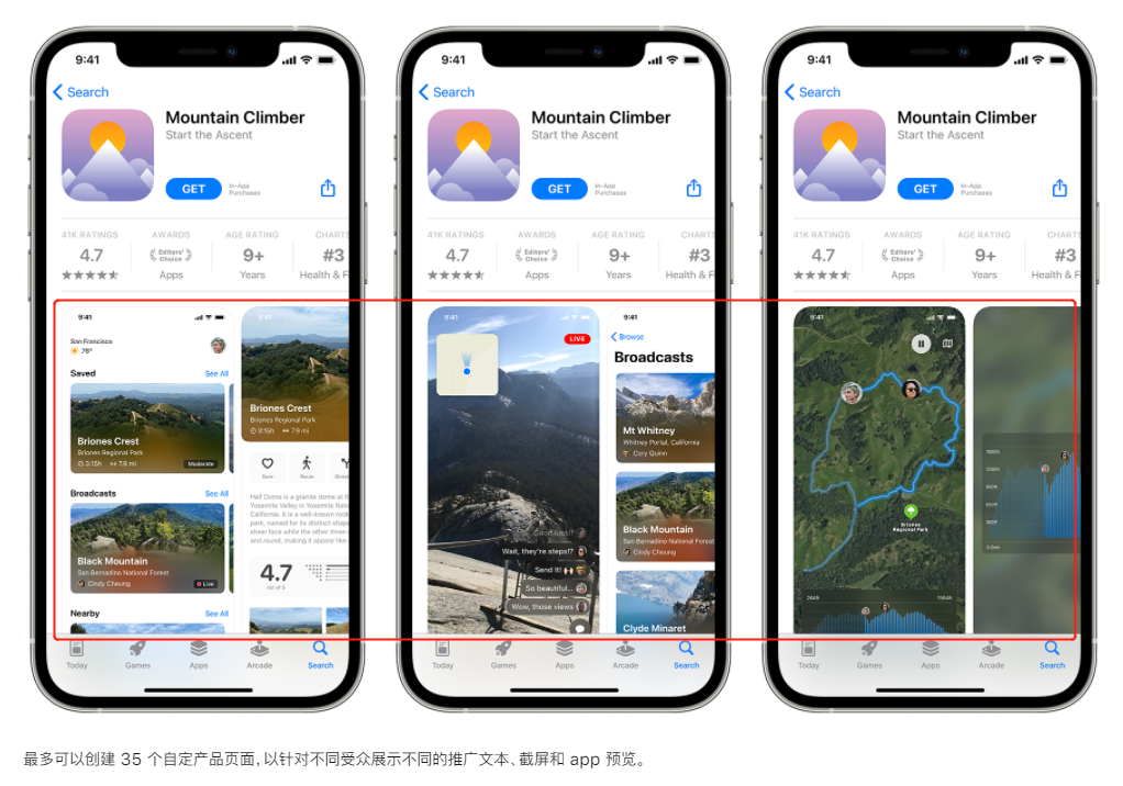 除了可以直接在App Store上展示App内活动外,苹果还推出了一项对开发者比较有利的更新:自定义产品详情页,以帮助App吸引特定的用户群体。