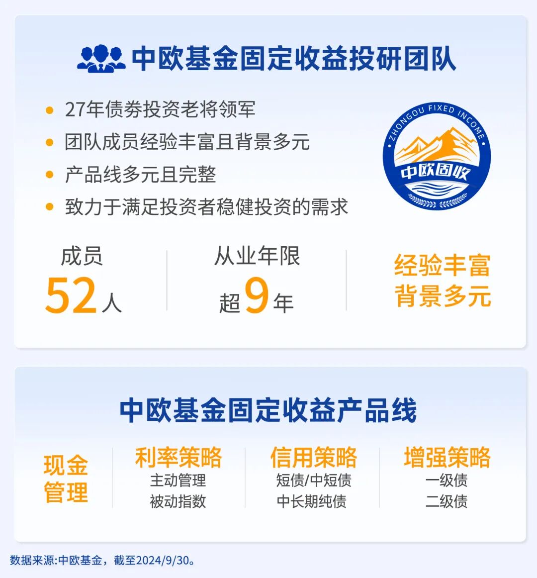 进入年末收官季,债市将如何演绎?投资策略又该进行哪些调整?中欧基金旗下固收产品近期披露了2024年三季度报告,一起来看看中欧固收团队的观点吧~