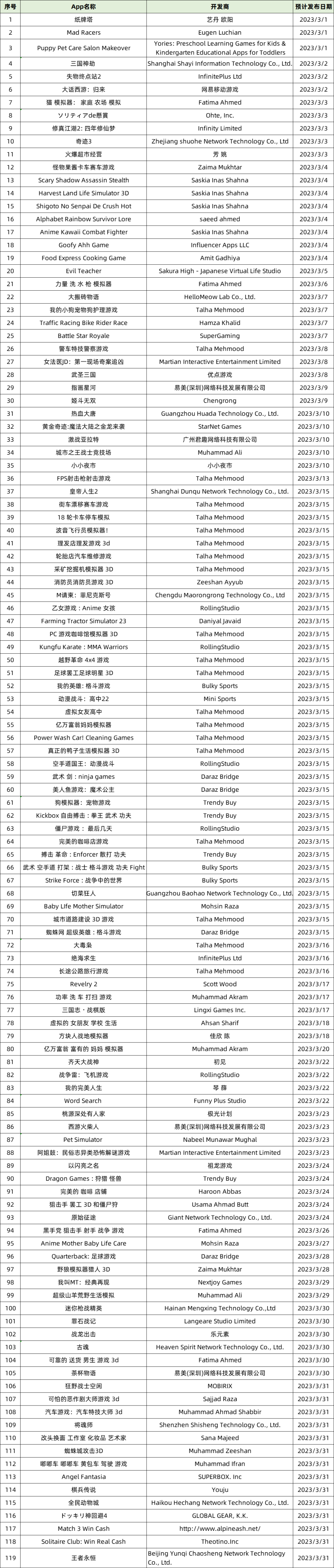 七麦数据的预订监控显示,3 月将有 119 款游戏产品通过预订转上架的方式上线 App Store,其中包括乐元素的「战龙出击」、祖龙游戏旗下的「以闪亮之名」等,具体可见下表:
