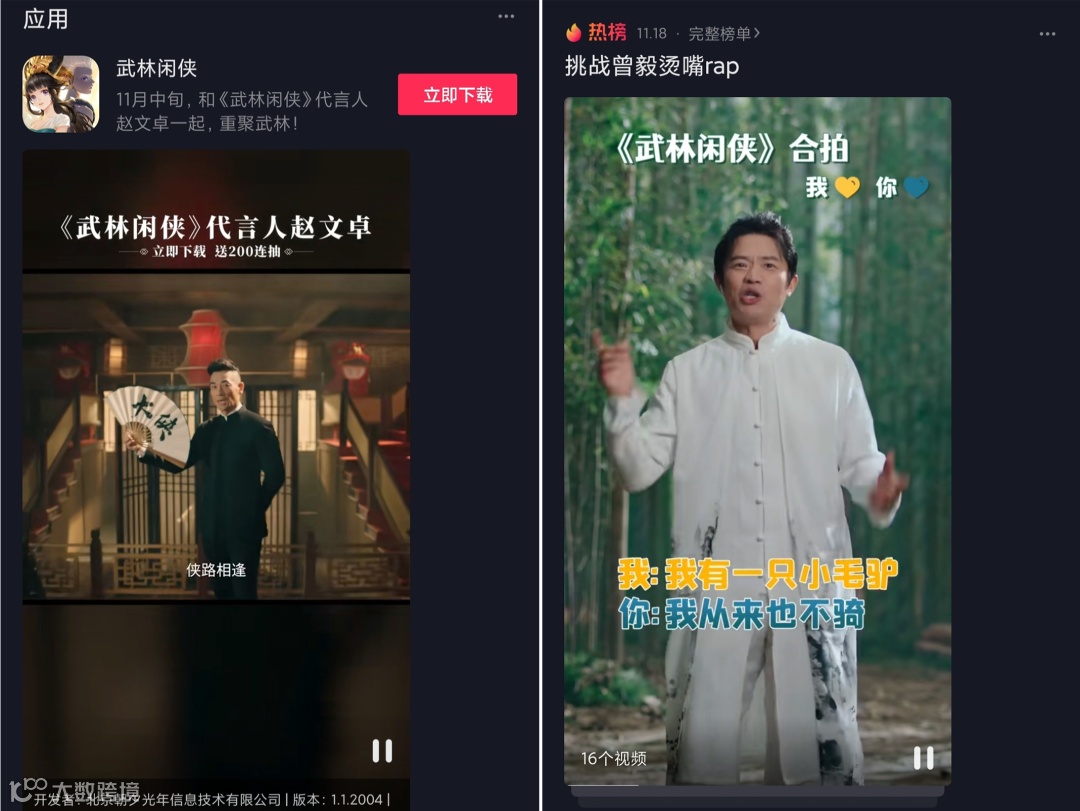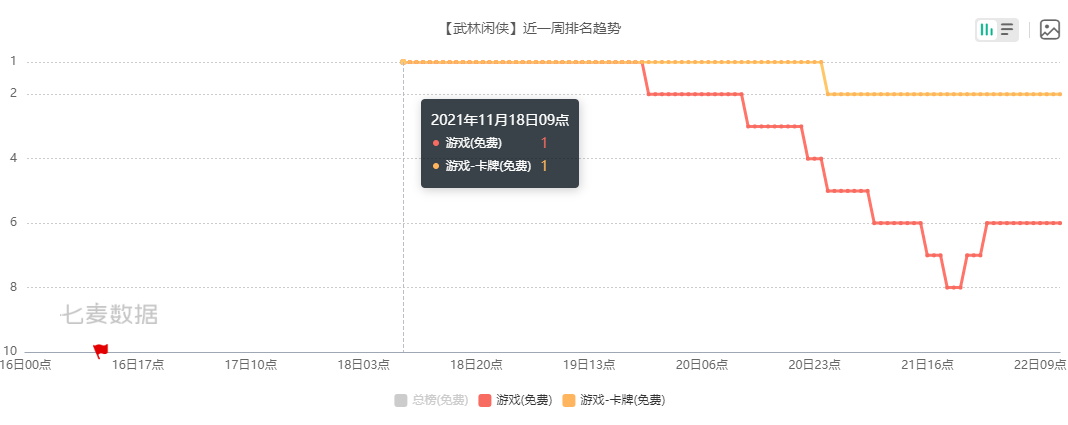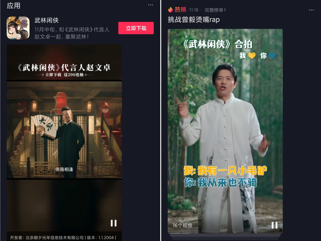 11 月 18 日,由金山世游研发,朝夕光年代理发行的卡牌手游「武林闲侠」正式上线,上线首日表现强势,超越「英雄联盟手游」,登顶 iOS 游戏免费榜。