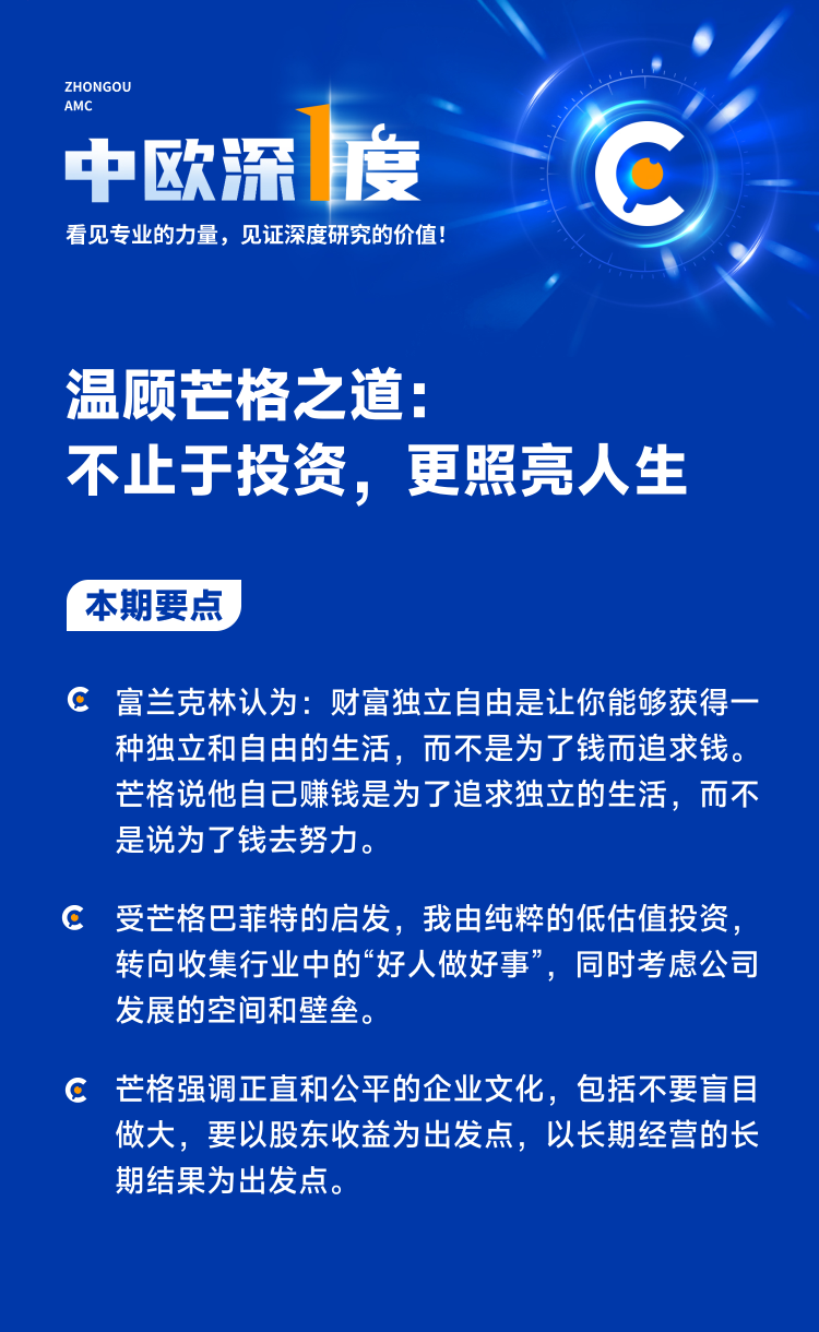 芒格一生慷慨、善良、理性,他带给我们的启示远远不止于投资之道。他总是慷慨地向我们分享关于普世的智慧,他的人生哲学影响了无数人,我们很多人都因为他,人生变得更好了。