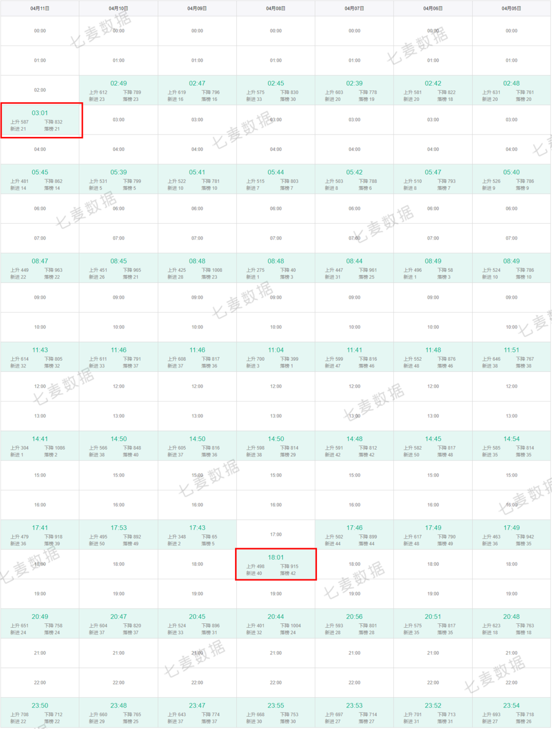 上周关键词每日更新节点主要集中在5点、6点、10点、11点、13点这几个时间点,其中更新数量较多时间点为5点、11点及13点。