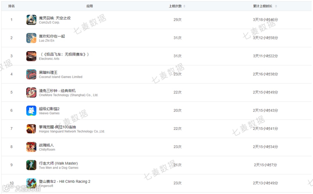 「国家反诈中心」连续4天位于Top1宝座;「拼多多」霸榜两天,「剪映」霸榜一天。「交管12123」与「国家反诈中心」分别在6日、7日排名上升,进入应用免费榜前10名。