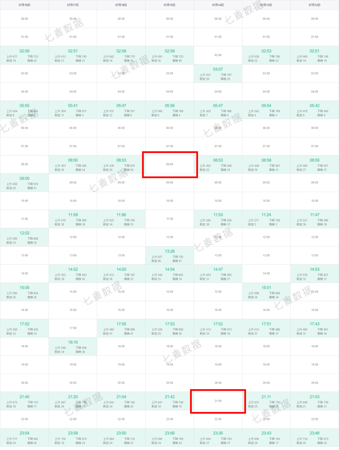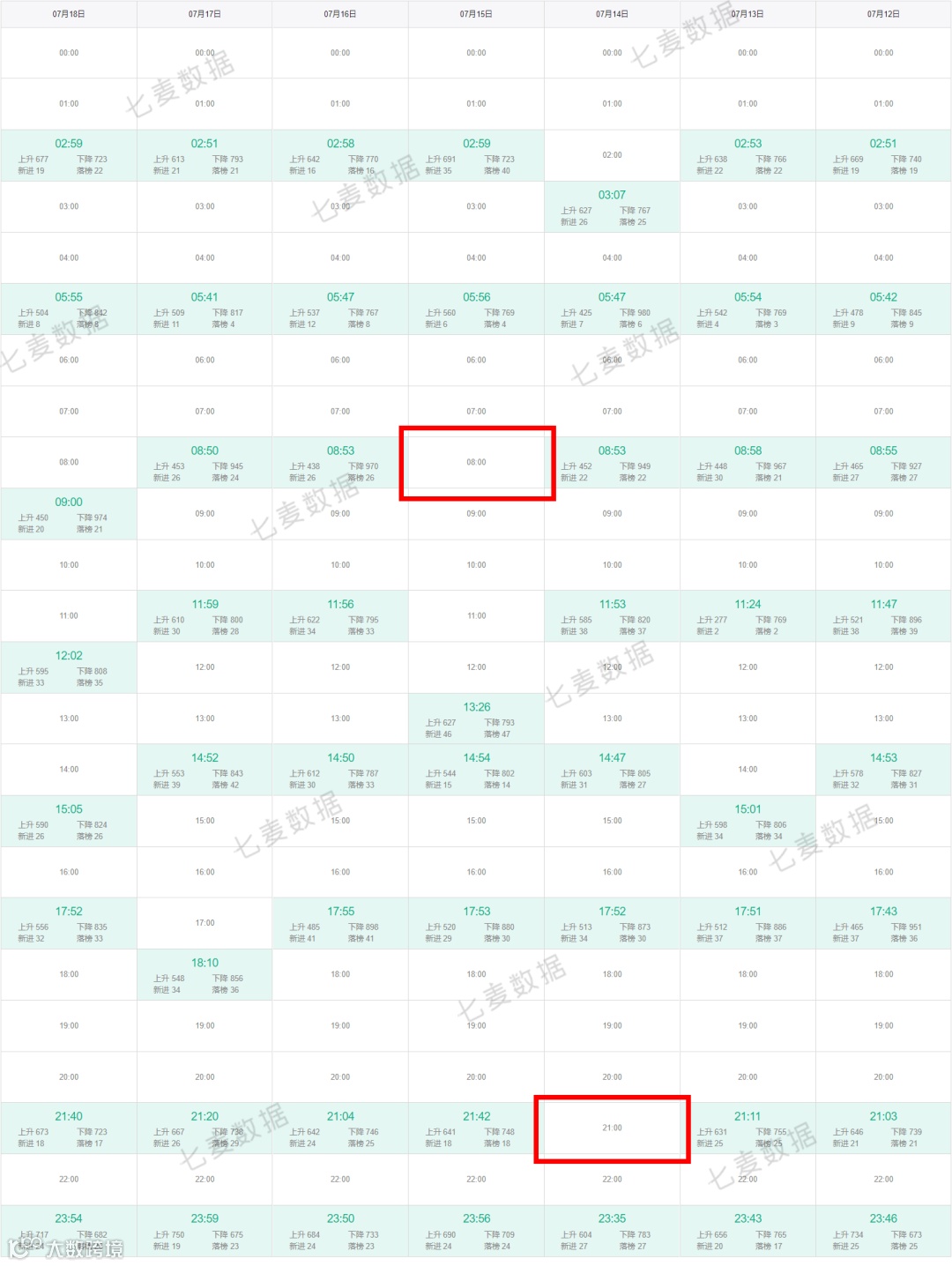 上周关键词每日更新节点集中在 1 时,4 时,5 时,7 时及23 时几个时间点,其中更新数量较多时间点为1 时、5 时及7 时。
