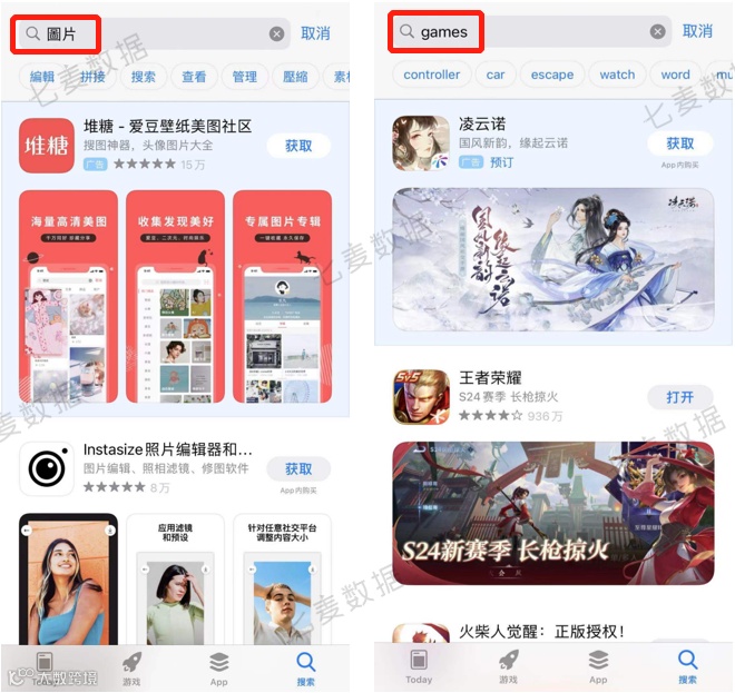 经过七麦研究院测试,在展示逻辑、支持语言等方面发现了一些新现象,分享给大家: