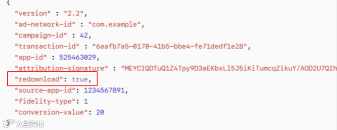 返回的归因参数包含“redownload”字段,可用来分析用户是否重复下载并安装此App。