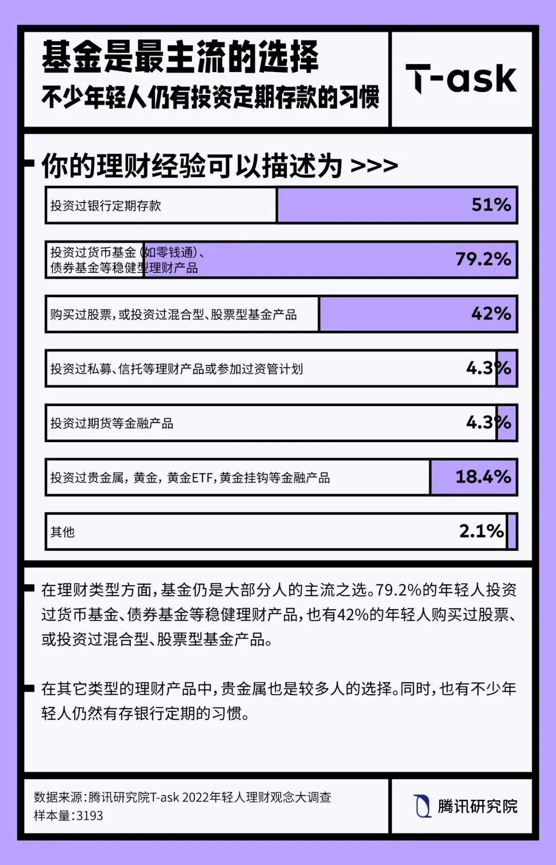 腾讯研究院的调研平台T-ask曾在2022年针对90后、00后年轻人的理财观念与行为做过一份调查,发现他们的理财风格整体稳健保守,更注重细水长流。