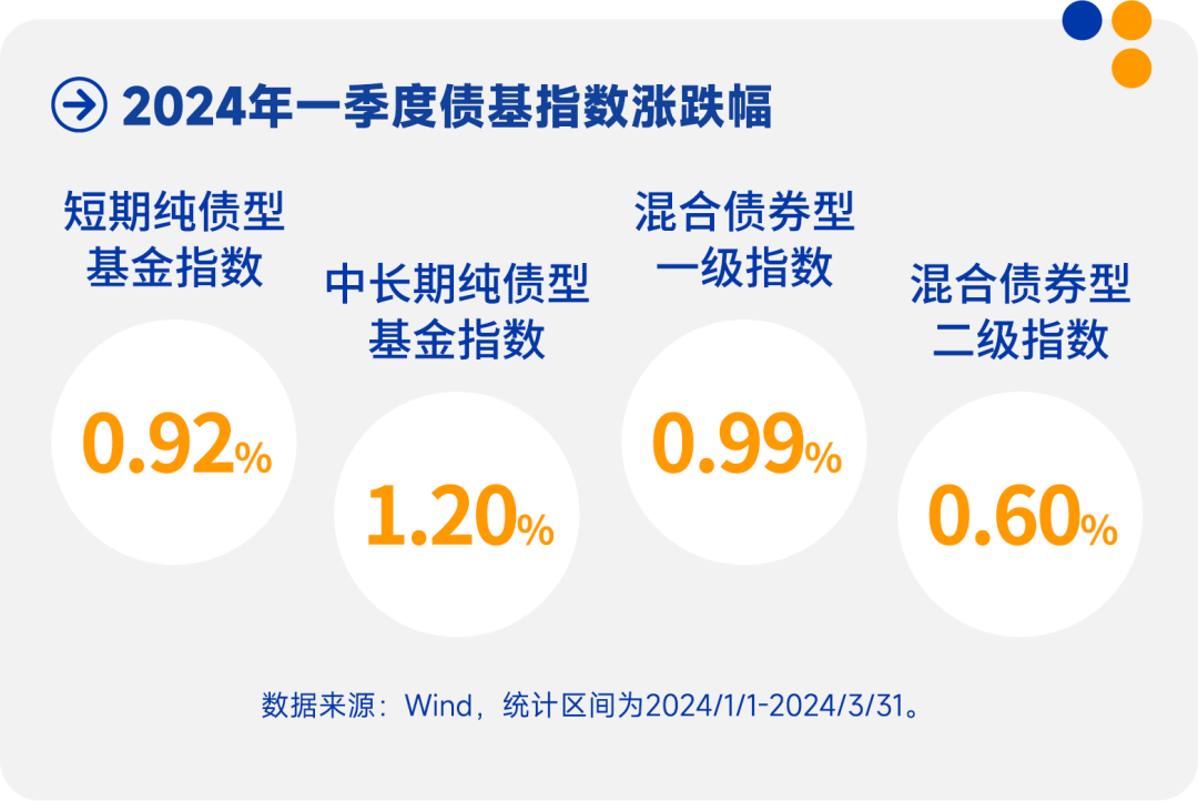 一季度收官,在货币环境整体宽松的背景下,债券市场整体表现较好。2024年一季度,中证全债指数涨幅达2.34%。债券型基金下各类基金均有不俗表现,具体来看: