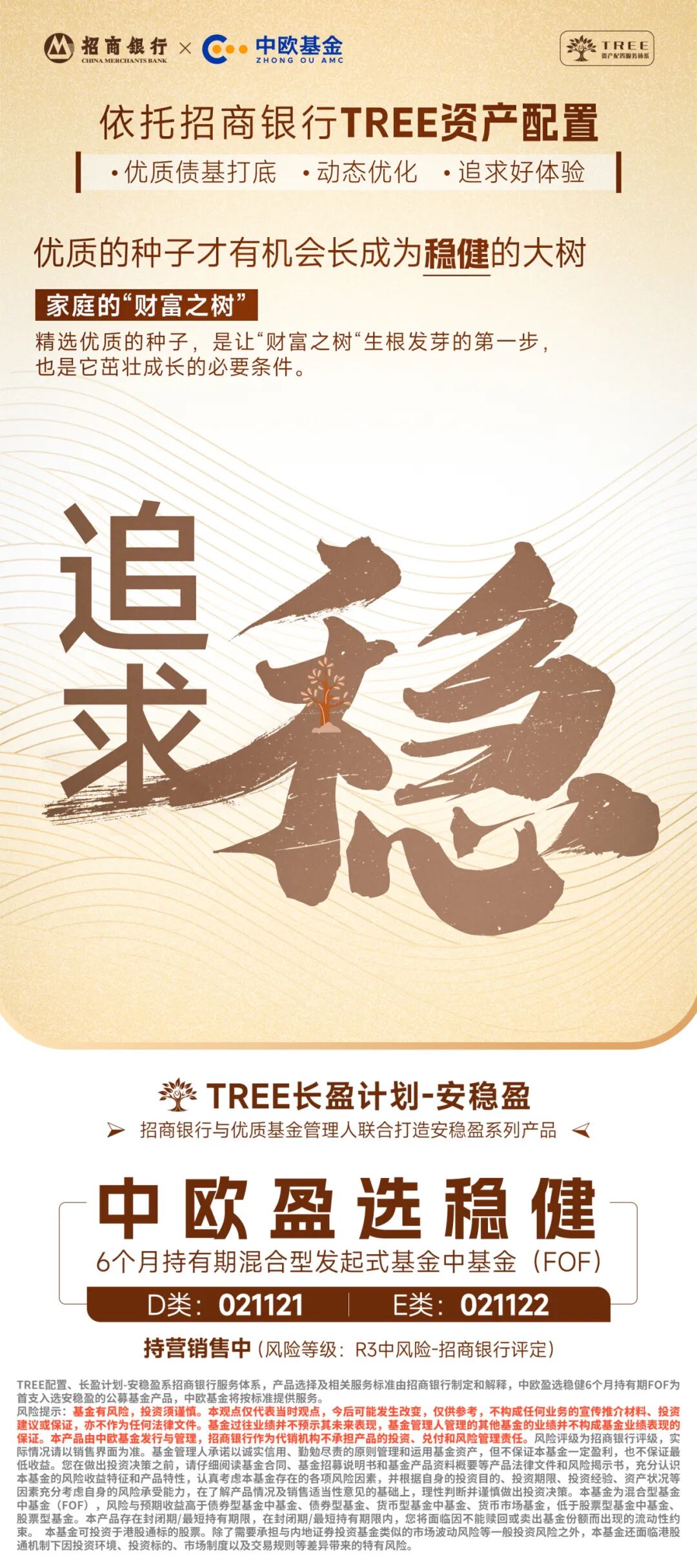 刚刚设立D、E份额的中欧盈选稳健6个月持有期混合型发起式基金中基金(FOF)(基金代码:D类021121 E类021122),就是一只定位于追求“稳健”、重收益也重回撤的FOF基金。
