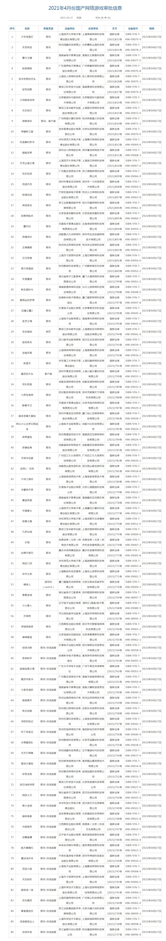 自4月1日起,游戏送审将试行全新的评分审查制度,低分游戏将被打回,进而无法进入版号的排队流程。4月27日,国家新闻版署公布了最新一批国产游戏版号消息。