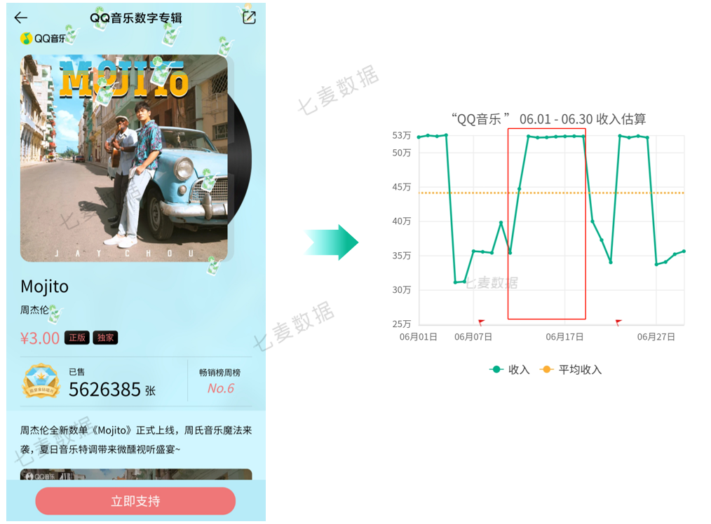 6 月 12 日 0 点,周杰伦的全新付费单曲《Mojito》在QQ音乐首发上线。据悉,单曲在正式上线之前,便已有超 300 万歌迷预约,新歌相关话题更是登上QQ音乐与微博热搜。其热度非同一般,在单曲正式上线后则吸引了众多用户纷纷涌入QQ音乐进行付费购买,截止目前,该专辑在QQ音乐中已售卖超 562 万张。