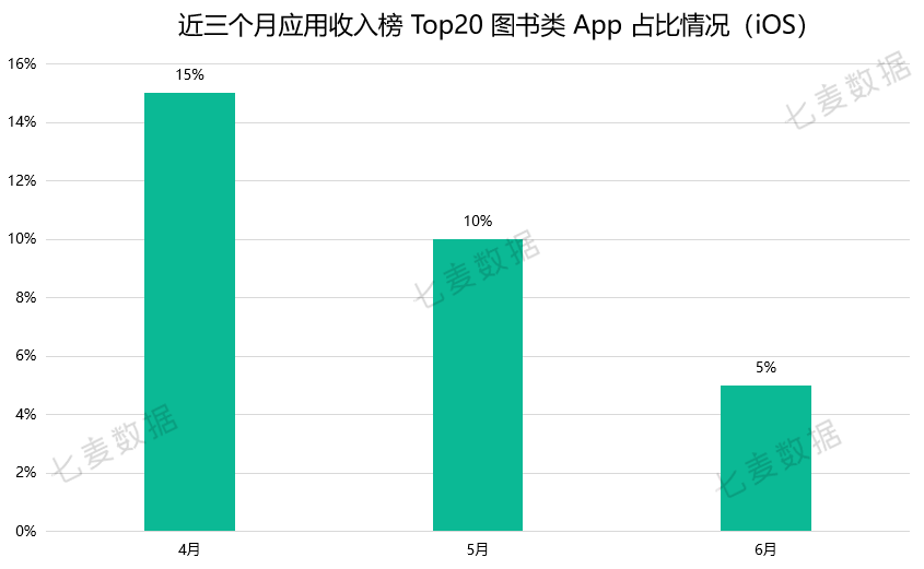 此外,从近三个月的应用收入榜 Top20 分类占比情况来看,图书类产品呈现出了逐月下降的趋势,可见图书类产品想要冲进应用收入榜 Top20 的难度正在节节攀升。