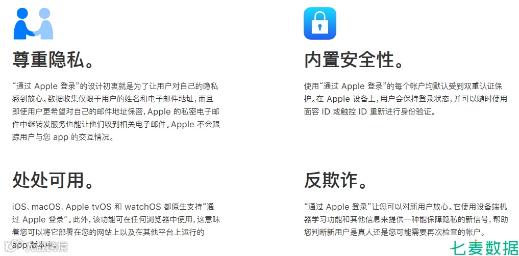 那么通过 Apple 登录有什么特点呢?苹果给出了以下 4 点: