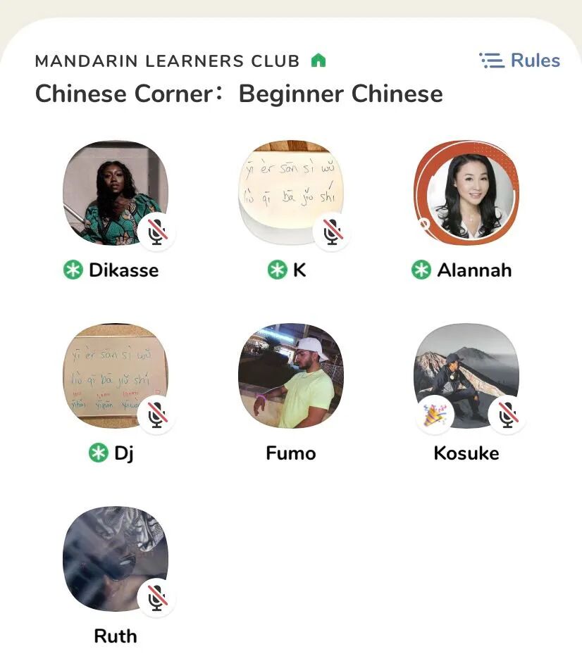 比如,我发现一个Room,里面一个中国女孩子在教一帮老外学中文,TA们一句一句跟读,学得极为认真,课堂氛围也非常好,这就是典型的在线教育场景。