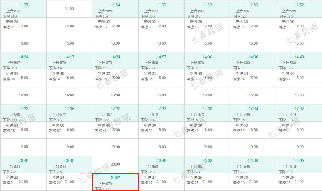 另外,7 月 31 日的第 7 次更新出现在 21 :07,而 8 月 1 日的榜单则只更新了 6 次,分别出现在 2:30、5:46、14:17、17:36、20:48、23:38。