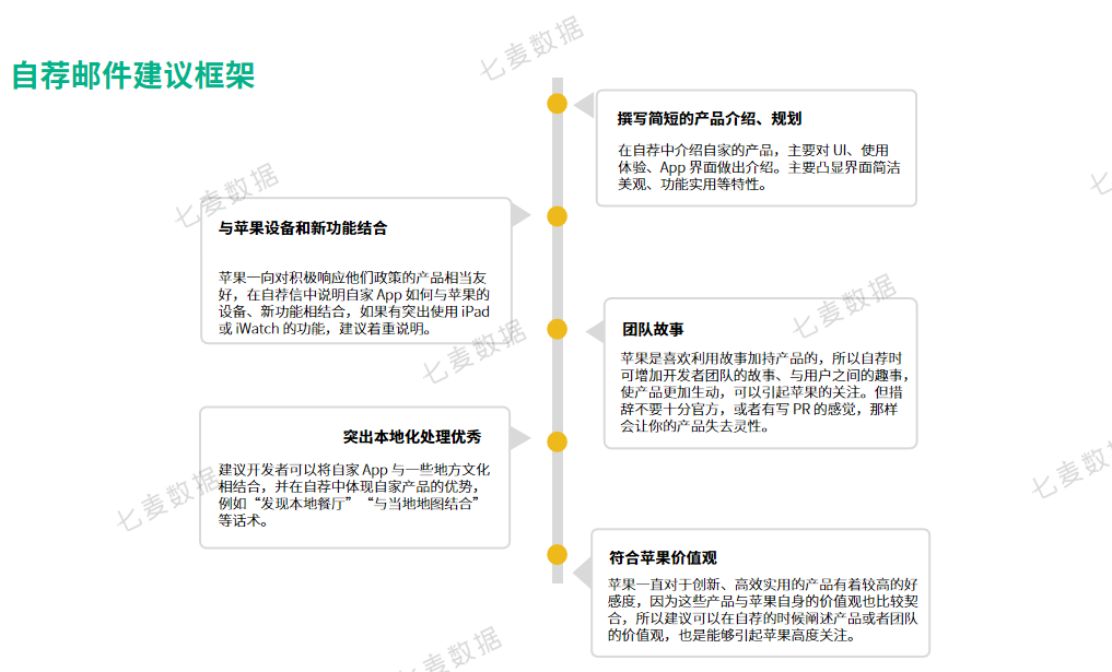 苹果一直对于创新、高效实用的产品有着较高的好感度,因为这些产品与苹果自身的价值观也比较契合,所以建议可以在自荐的时候阐述产品或者团队的价值观,也是能够引起苹果高度关注。