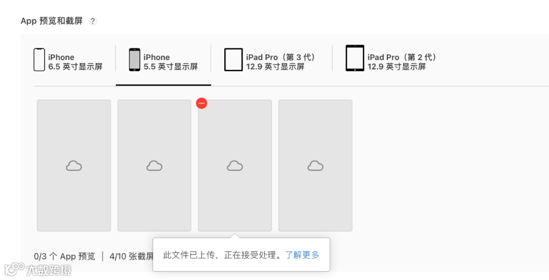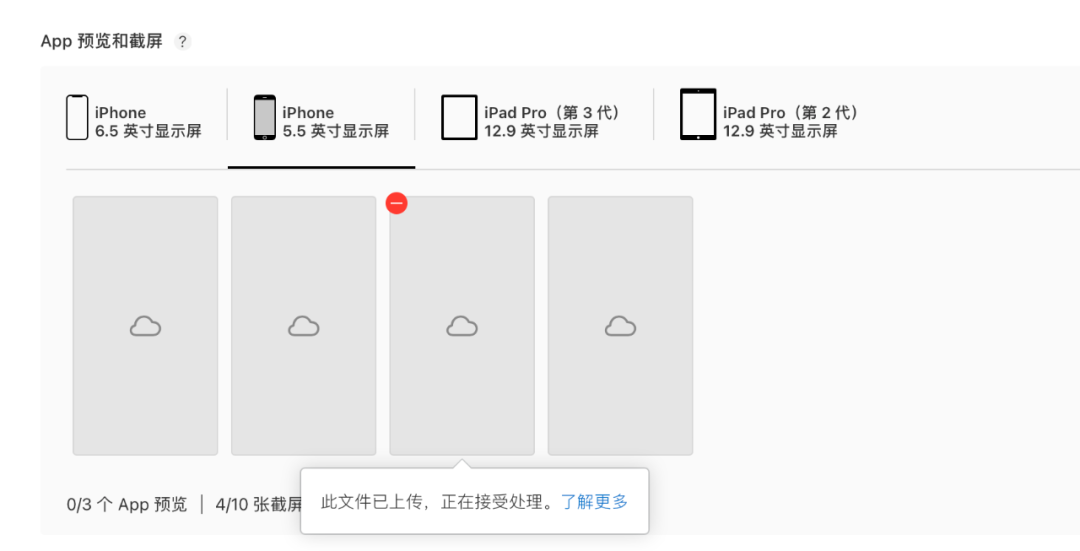 在“App预览和截屏”位置虽提示文件已上传,但无法显示。目前已经收到不少开发者针对该问题的反馈,七麦数据也进行了测试,目前确实存在此类问题。