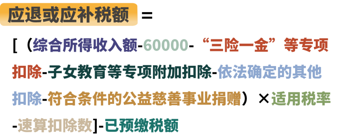 个税汇算办理的结果是多退少补,那怎么计算自己应补或应退的税额呢?记住这个公式和税率表,轻松就搞定。如果已经预约成功了,也可以直接在个税APP上看,更直接~