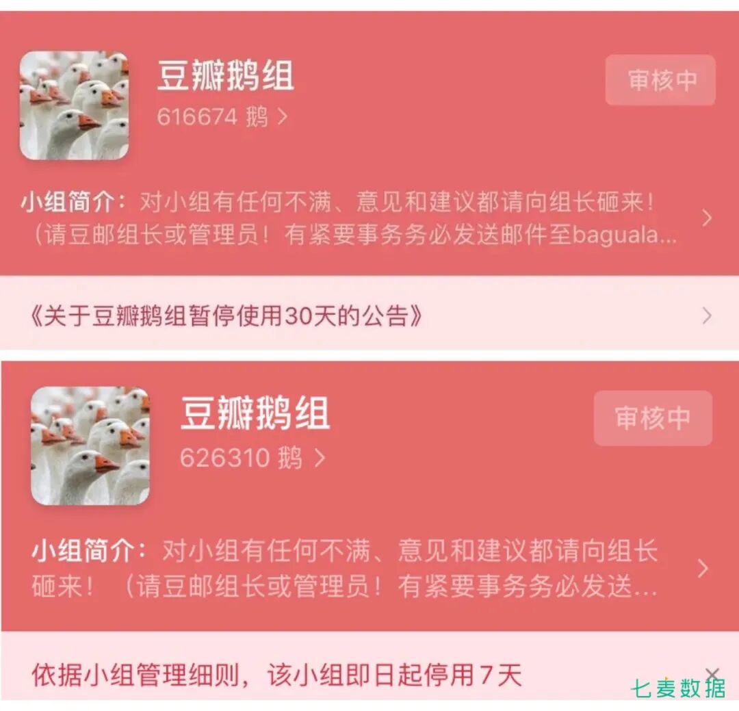 用户越多、圈子越多,内容也就越杂,尤其是信息发达的当下,稍微一点事情就能被无限放大,娱乐时间更易引发拉踩。如曾被誉为“文艺青年”领地的「豆瓣」,如今已成为大量吃瓜群众的汇聚地。「豆瓣」鹅组也因存在大量博人眼球、开撕事件在去年被封禁一个月,好不容易解封后,上月月底再被封禁一周。