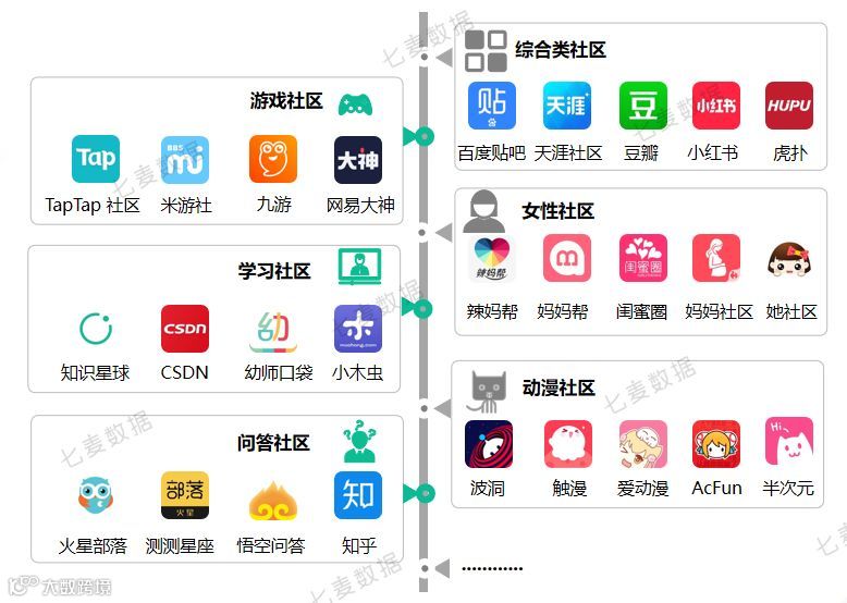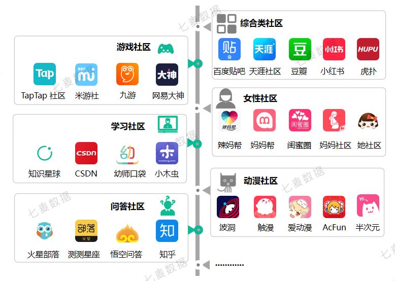 目前 App Store 中社区产品,可划分为综合类社区、游戏社区、女性社区、学习社区、动漫社区、问答社区等。综合类社区覆盖用户范围广,能让用户自由发散兴趣爱好,交友与学习,如「百度贴吧」、「豆瓣」、「小红书」;垂直类社区能深耕于某一用户人群,具有较高的用户黏性,如「网易云音乐」、「TapTap 社区」。