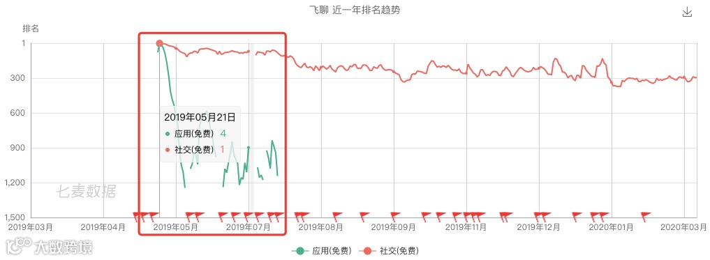 「飞聊」在产品上线初期,该产品早期因背靠字节跳动,而受到较强关注,在上线初期便直接冲进 App Store 应用榜(免费)Top4,社交免费榜 Top1。