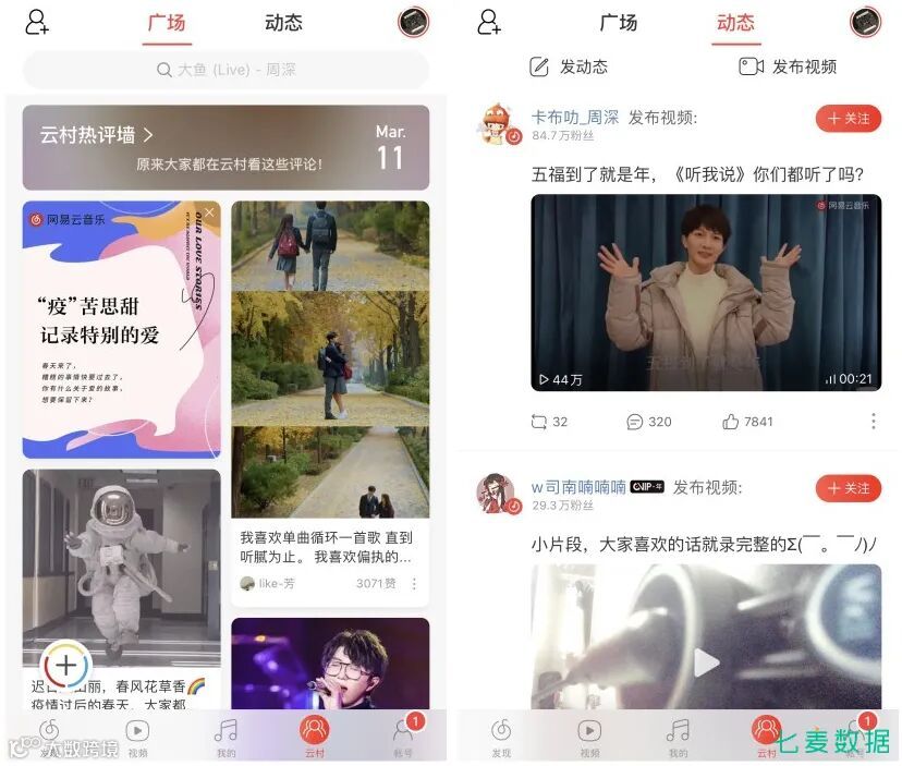 在发展的过程中,不断突破自身局限,拓展业务边界,是产品蜕变的必要途径。「网易云音乐」在去年 7 月底重新上架 App Store 后,也增加了“云村”社区,让用户可以直接在平台中分享动态,制作短视频,既迎合了当下短视频的热潮,也将平台用户热爱音乐、爱分享、爱评论的性质进一步发挥。同时,下架之后以新姿态重归用户面前,不仅能促进老用户的回归,还能更好的吸引新用户。
